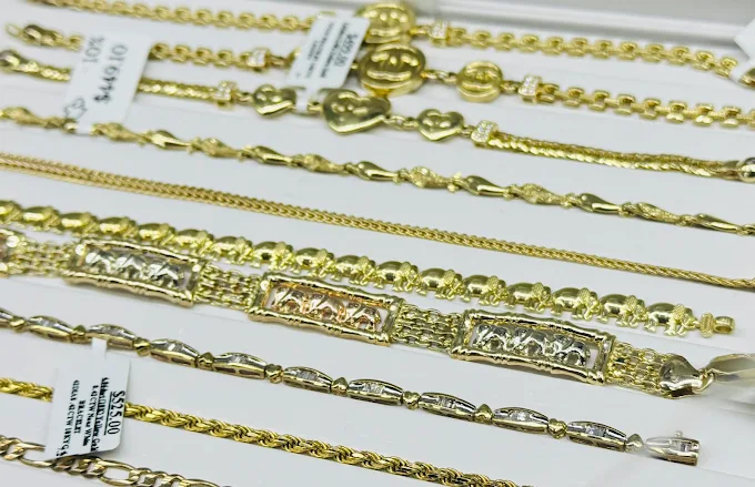 Any condition is fine — we buy broken jewelry, single earrings, tangled chains, and pre-owned watches, including luxury brands.
